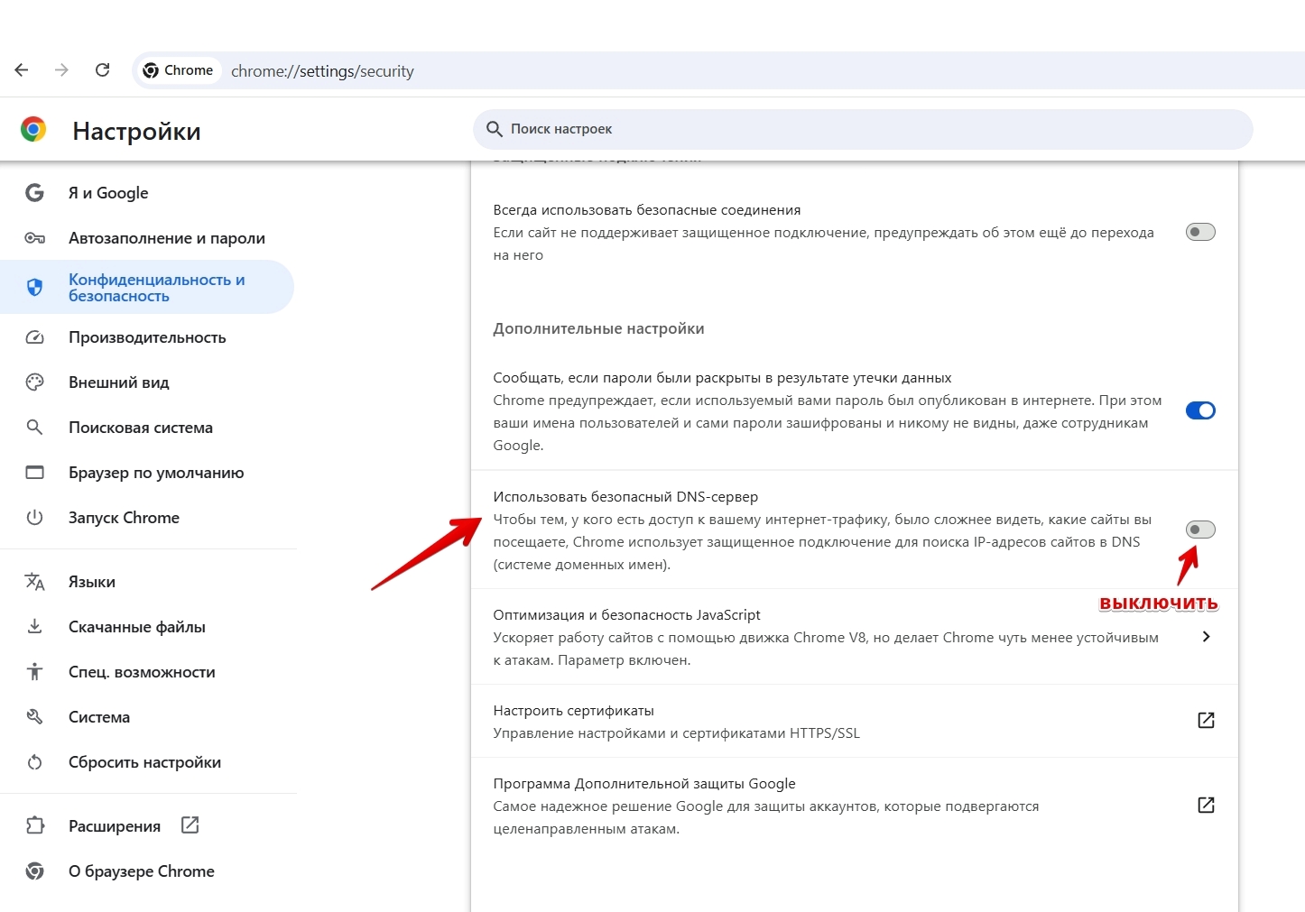 Ниже показано, где и как отключить эту настройку в браузере Google Chrome:
